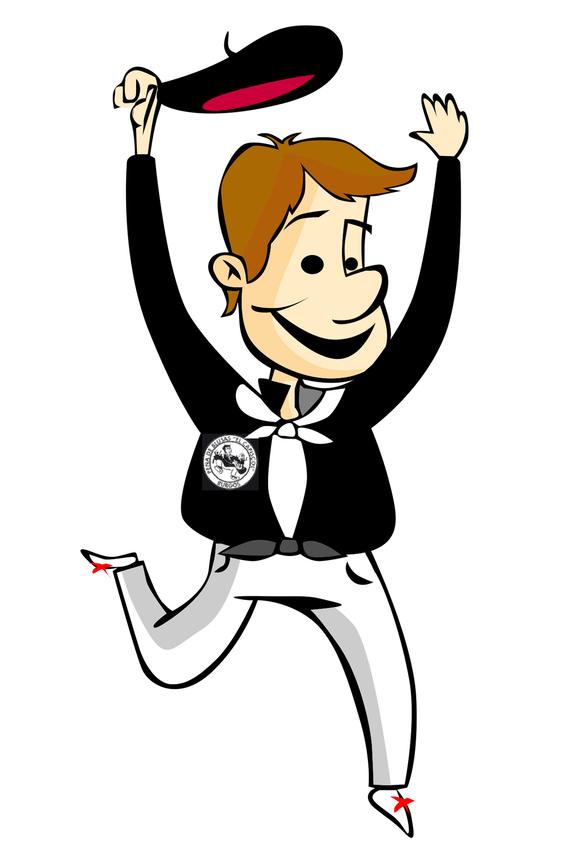 Blusa negra con logotipo / pantalón blanco / camiseta blanca con escudo / pañuelo blanco con escudo / boina negra