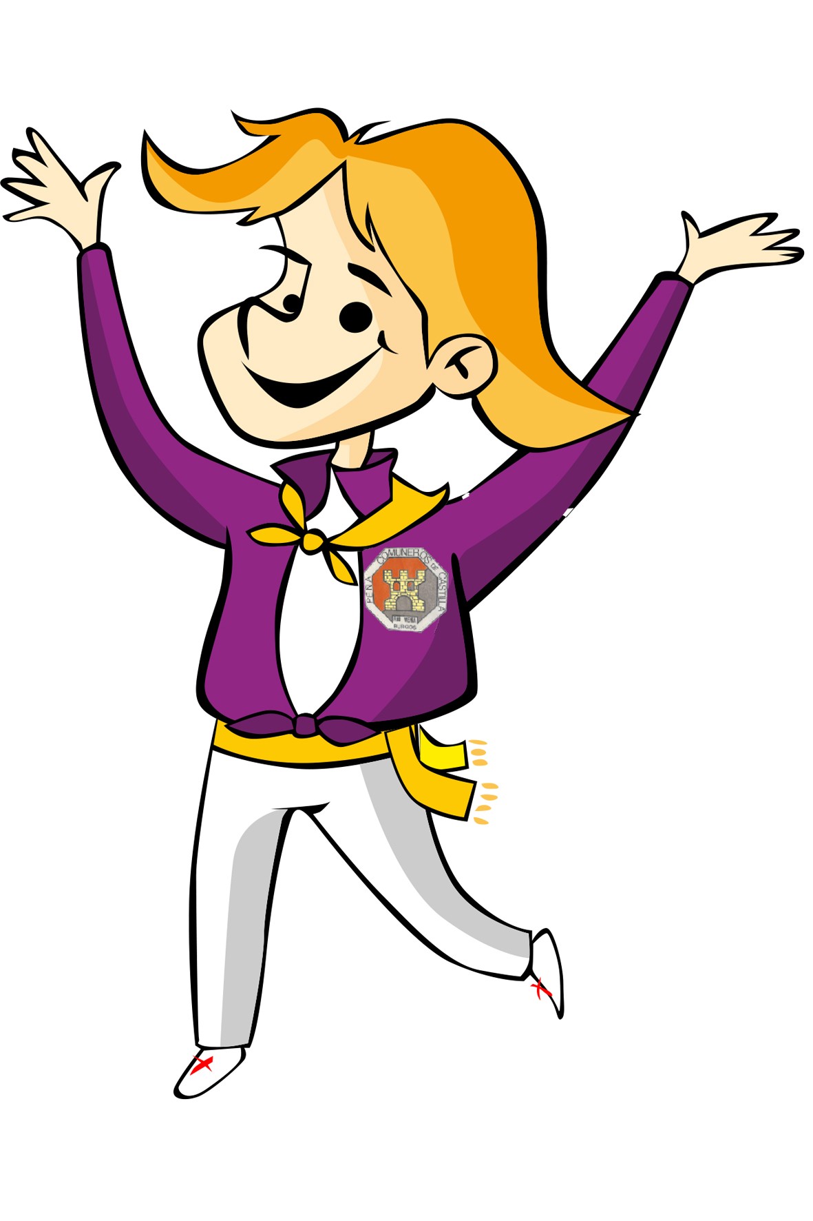 Blusa morada / pantalón blanco / pañuelo y faja amarillos