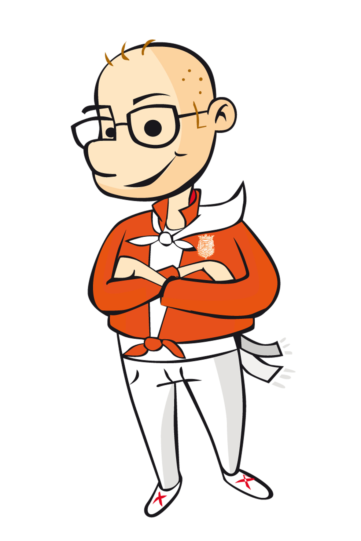 Blusa naranja / pantalón blanco / camiseta blanca / pañuelo blanco.